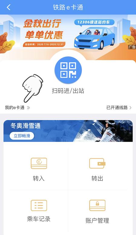 “铁路e卡通”是由中铁银通支付有限公司发行的新一代中铁银通卡实名制电子卡片,不配发实体卡。在指定线路的指定列车,持“铁路e卡通”的旅客,无需提前购票,持二代身份证原件和“铁路e卡通”的动态二维码即可扫码快速进出站。