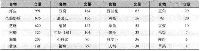常见食物的钙含量,图片来源:《中国居民膳食营养素参考摄入量》