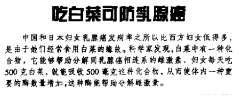 说法三:吃白菜可以预防乳腺癌。