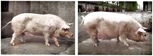 上海白猪产仔数较高、瘦肉率适中、生长较快,作为母本配套生产“杜洛克猪x长白猪x上海白猪”三元杂交商品猪受到消费者欢迎。