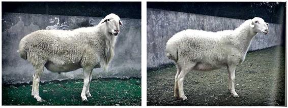 公羊体型较大,前躯发达,胸宽深,胸毛粗长。属短脂尾,尾呈扁圆形,尾尖上翘。被毛异质,呈毛丛结构,腹毛稀而粗短,颈部及四肢无绒毛。