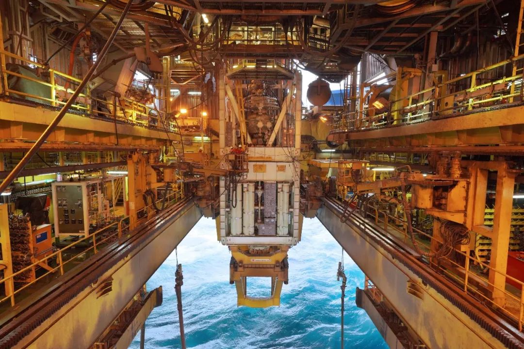 12月3日,“海洋石油982”钻井平台在流花29-2油田进行钻完井作业,员工在平台月池的水下防喷器安装采油树控制装置,为下一步下防喷器作业做准备,确保高效顺利完井。