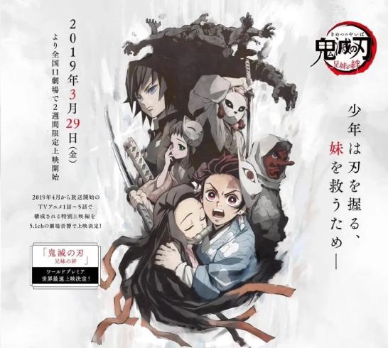 早在《鬼灭之刃》电视动画播放前,片方便在日本11间影院上映特别版《鬼灭之刃 兄妹之绊》,内容则是电视动画的第1集到第5集。这次为期两周的限定上映,对电视动画正式上线产生了良好的预热效应。