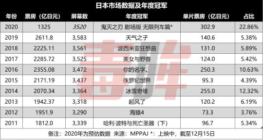 而凭借本土市场的强势发挥,《鬼灭之刃》的全球票房达到2.81亿美元,超越《姜子牙》(2.41亿美元)成为年度全球动画冠军。