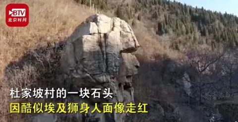 11)12月18日,山东济南,杜家坡村的一块石头因酷似埃及狮身人面像走红。有驴友拍下照片发到网上,1年时间引10万人专程前来打卡。为了保护这块奇石,当地已用围栏将其挡起。有专家表示,这块石头是在25亿年前形成的,很罕见。