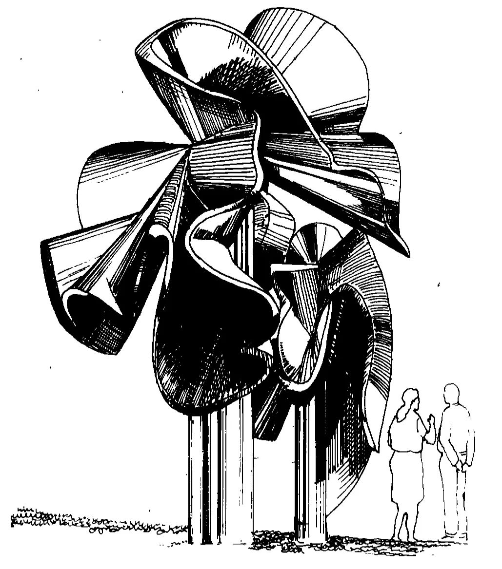 另一处城市开放空间是高安路口的西入口——“智慧广场”,这是人们进出上图新馆视听中心、展览厅、音乐欣赏室、800座报告厅与学术活动室的出入口。“智慧广场”以涌泉水池、踏步、坡道分为两个层面,以适应大量人流集散,也可避免与人行道的相互干扰,并显示其活跃氛围。广场草地中放置高度为6米的不锈钢抽象雕塑“智慧树”。