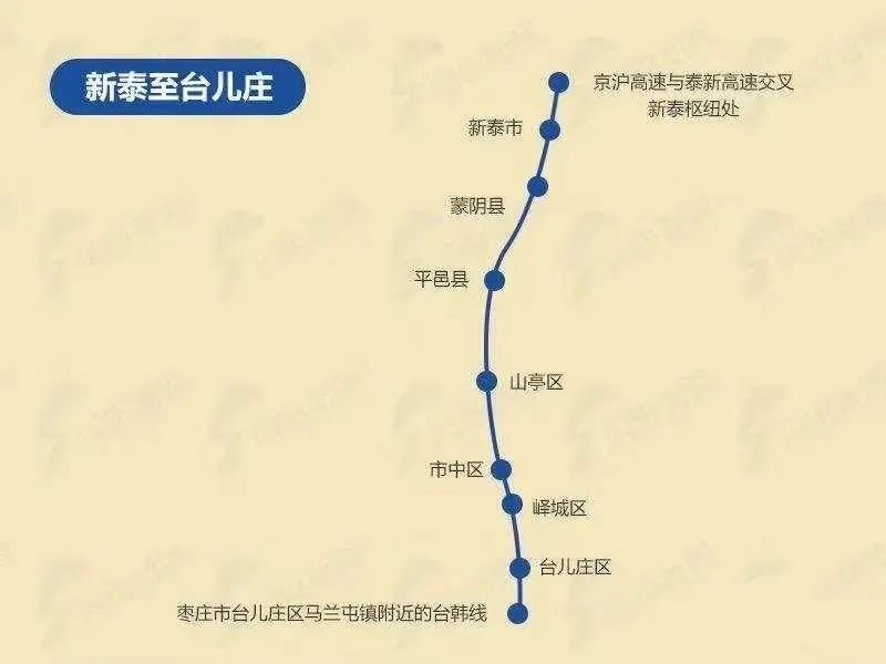 新台高速途径了泰安市新泰市、临沂市蒙阴县、枣庄市台儿庄区等七个市区县,是继京沪、京台高速公路后,连接泰山风景区、沂蒙山龟蒙景区、沂蒙山云蒙景区、台儿庄古城等风景名胜区的重要通道。