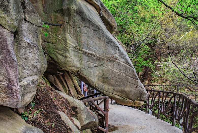 走在密林间,除了耳畔的虫鸣鸟叫,还随处可见各种神奇的景点。比如鹰窝峰上顶端的那棵“不老松”,“石为母,云为乳,蒙山奇松不知土”是对它最真实生动的写照。04.