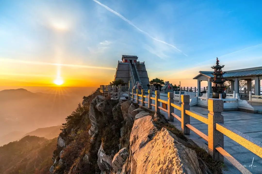 清晨,拂晓时分,一轮旭日从东方冉冉升起,柔和的光线照耀在龟蒙顶上,远远望去,像极了一条金光闪闪的彩带,给沂蒙山增添了无限的生机。