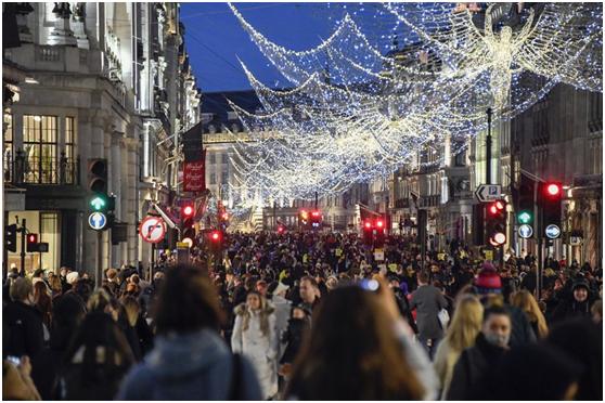 综合英国《每日星报》《太阳报》消息,伦敦“封城”前仅数小时,各大商业街挤满人群。民众上街购买圣诞礼物,部分地区的人们甚至在雨中排起长队。