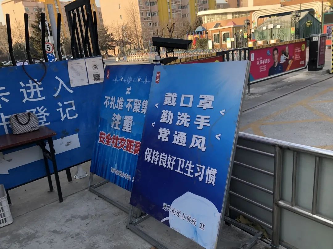 ▲社区入口处的防疫提醒