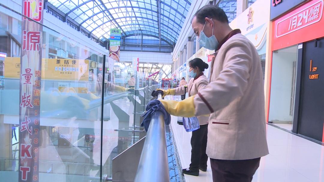 ▲城乡世纪广场工作人员进行消毒工作