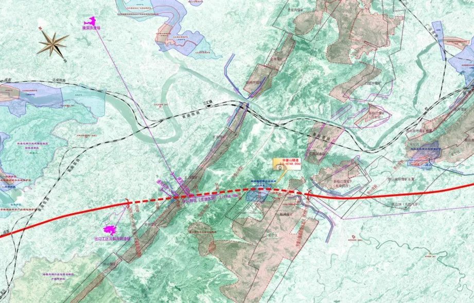 华蓥山隧道是全线的重点,位于达州市渠县汇南乡东侧,全长8748米,为双线单洞隧道;隧道内纵坡为人字坡,洞身穿越煤系地层,局部存在瓦斯等有害气体,隧道经可溶岩地层,溶洞发育,施工期间发生涌突水的风险很高。