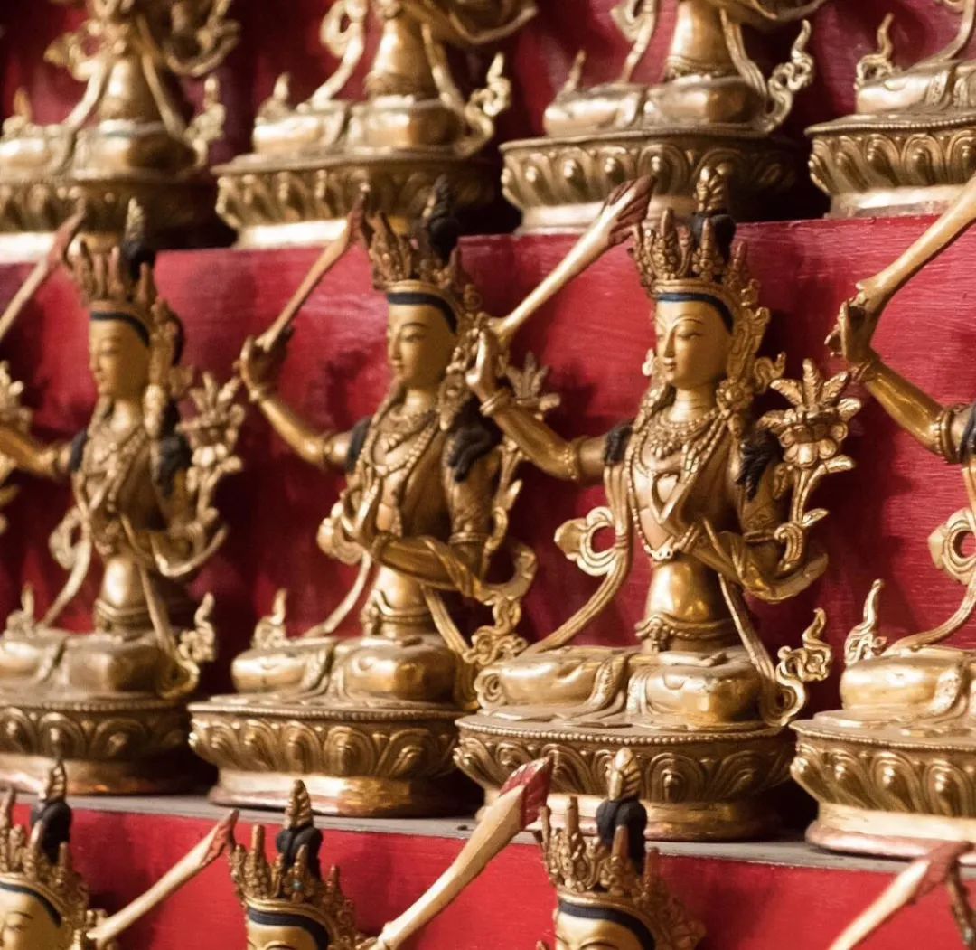 理塘寺又以富丽堂皇的建筑、琳琅满目的法器、千姿百态的佛像、精美绝伦的雕塑和浩瀚的文献藏书等,成为一座当今藏族宗教、文化、艺术的宝库。