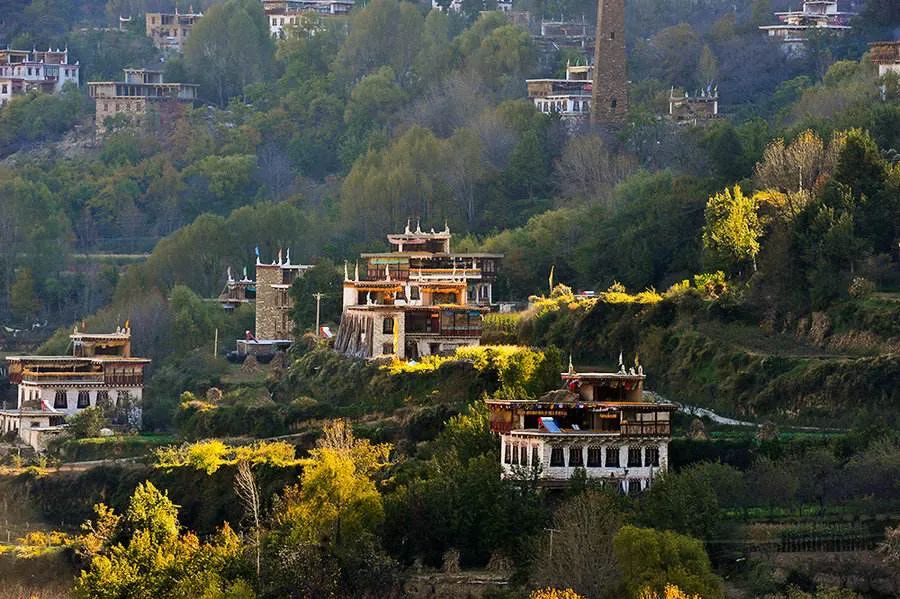 位于四川省甘孜州丹巴县东北部,海拔2100米, 白色的藏房在天空与草地的衬托下,显得格外肃静与原生态。
