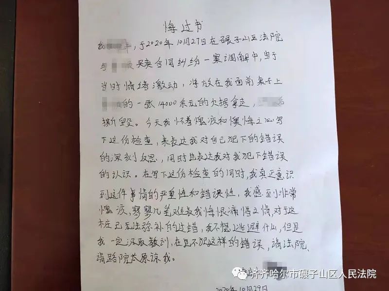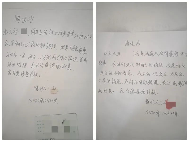 法警查看了两人的微信聊天记录,调取了法庭监控录像。在证据面前,两人低头认错,并写下了悔过书。