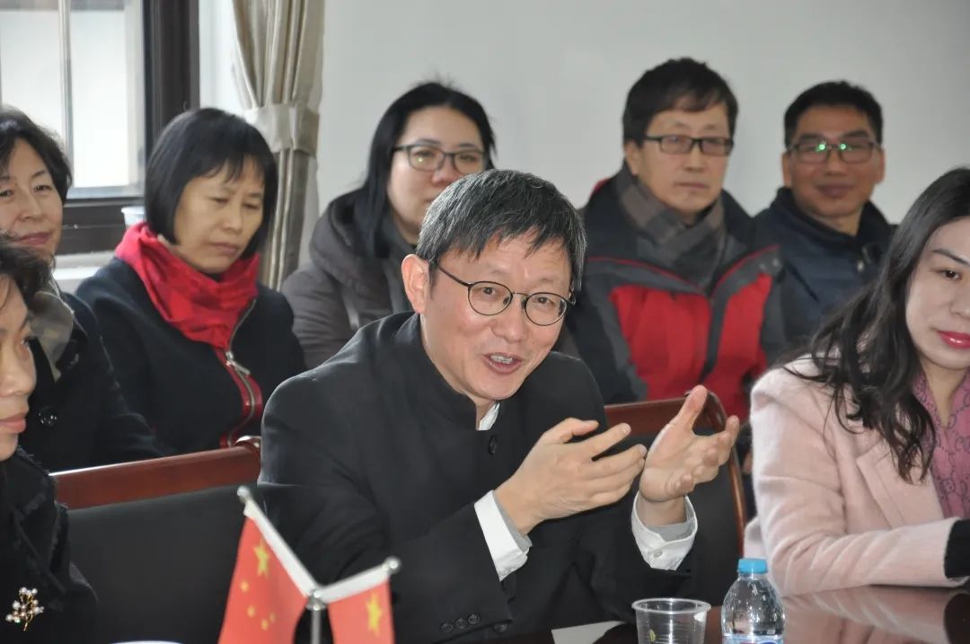 支援校进才中学北校特级校长金卫东走进育民中学,和老师交流。
