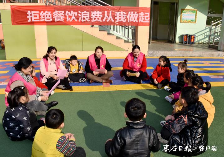 ■12月24日,薛城区陶庄镇妇联、科协等文明实践志愿者,联合幸福花苑社区到幼儿园以讲故事的形式,向小朋友宣讲“勤俭节约”的传统美德。连日以来,陶庄镇深入学习贯彻十九届五中全会精神,紧盯舆论引导这个重点,把勤俭节约、艰苦奋斗的理念内化于心、外化于行,强化宣传引导,贯彻“粮食安全”理念,全面营造浪费可耻、节约为荣的氛围,让制止餐饮浪费的声音“飞入寻常百姓家”。(特约记者 甄再斌 来源:枣庄日报客户端)