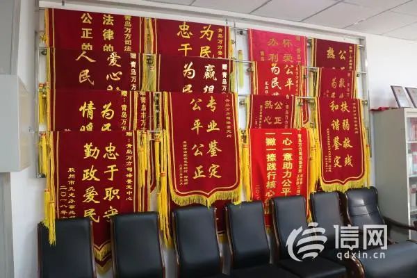 (青岛万方司法鉴定所会议室的墙上 挂满了委托人送来的锦旗 来源:信网)