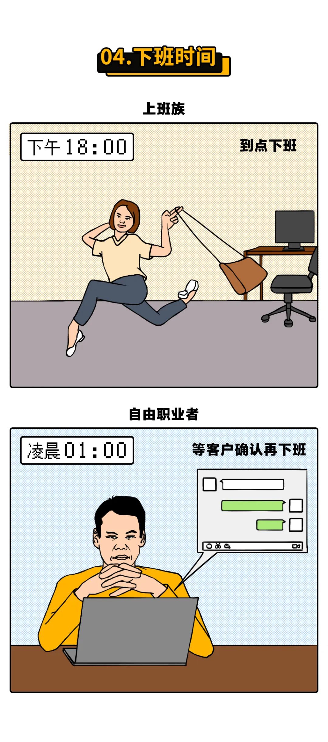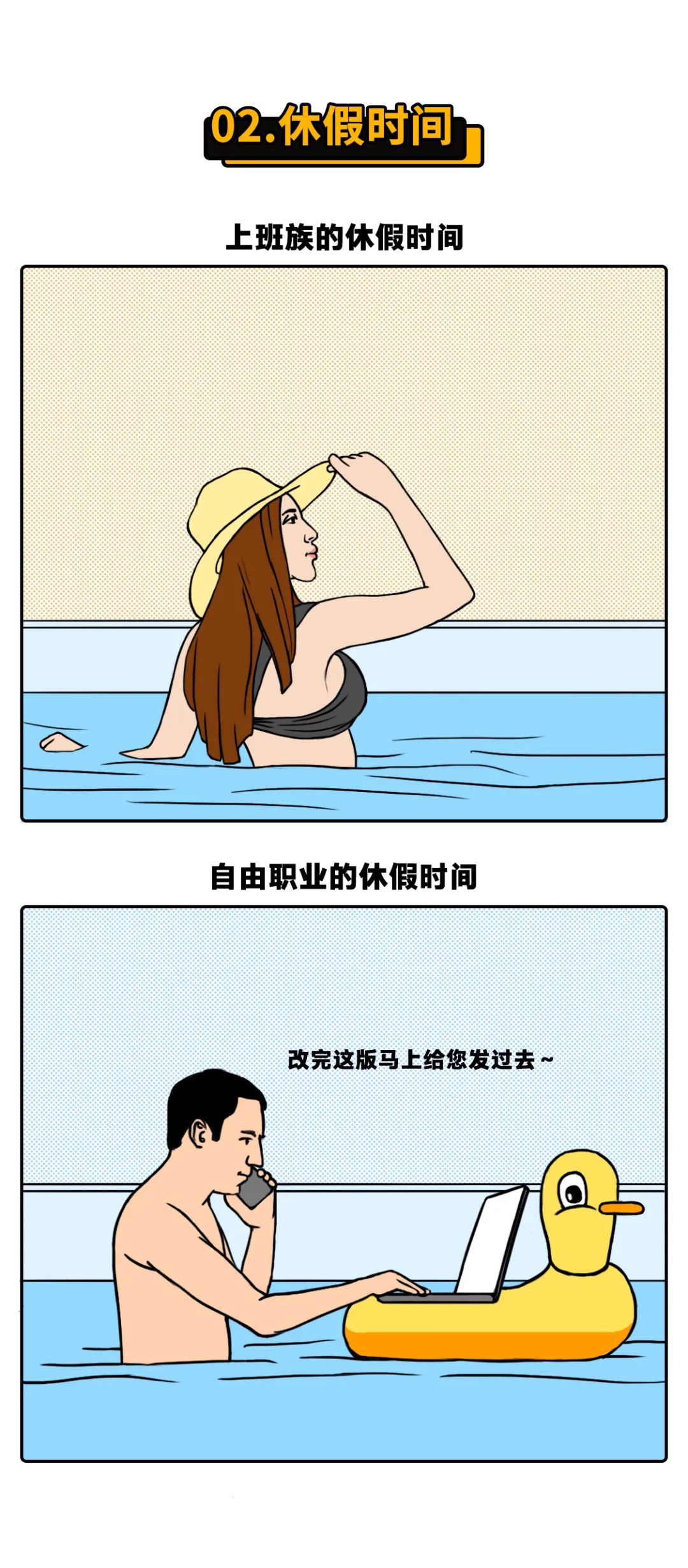 在这个获得了1463.1万浏览量的热门话题下,社畜们将炙热的目光聚焦自由职业:“每天睡到自然醒”、“摆脱无意义的社交”、“他们有权利挑选老板,并时不时地改变主意……”。更重要的是,他们不。用。上。班。