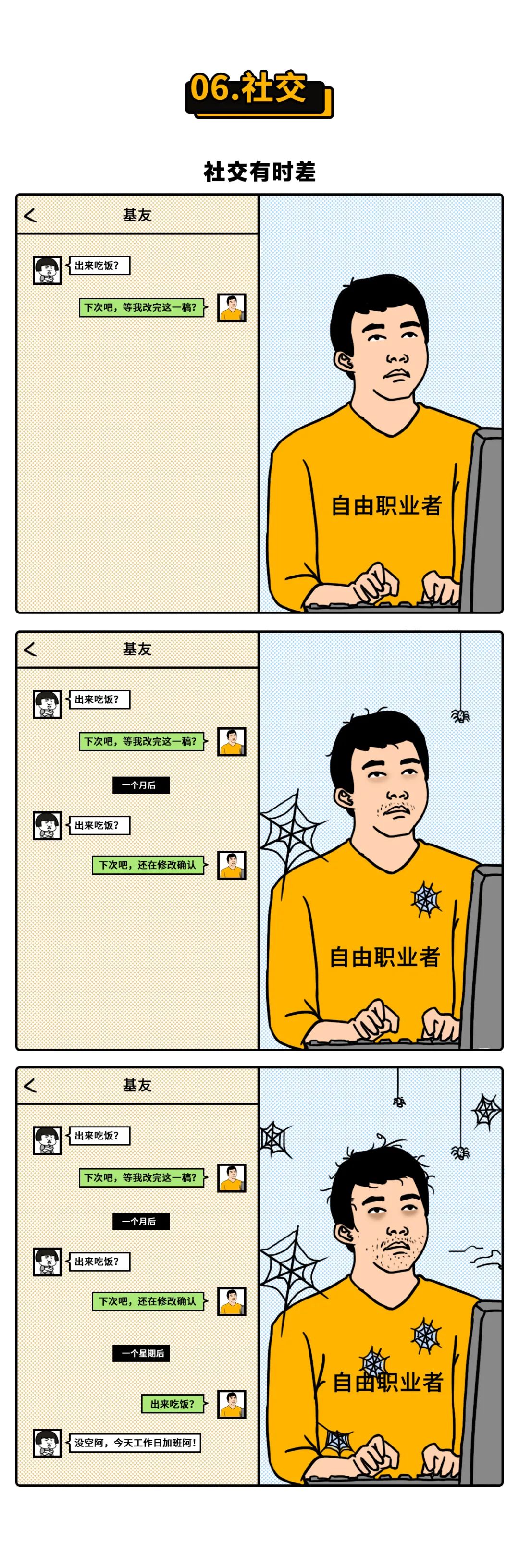 在免去朝九晚六的折磨的同时,没有长期合同,没有退休金,没有带薪假期,没有病假、收入波动、缺乏安全感……甚至在申请信用卡时都会遇到麻烦——因为申请信息里要求填工作单位和工资流水。所有你能想见的不稳定因素也许都成了自由职业必须克服的困难。