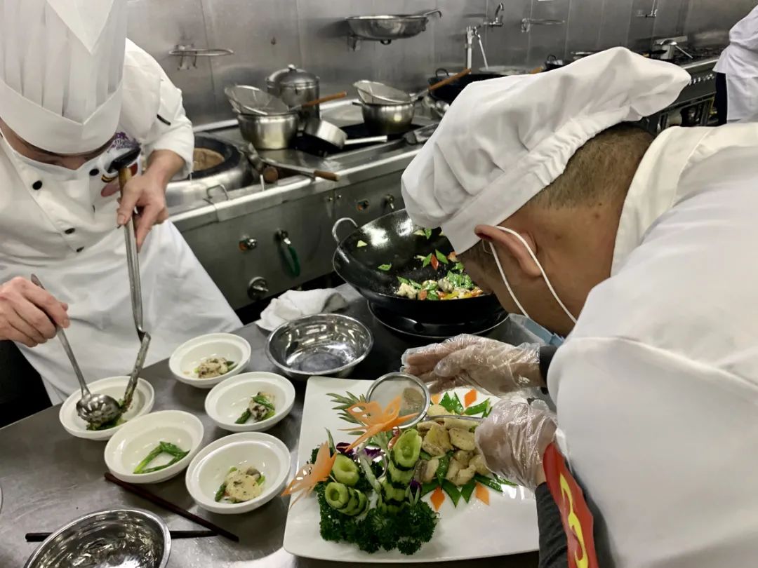 参赛厨师在后厨忙碌。/佛山日报记者卢丽华摄