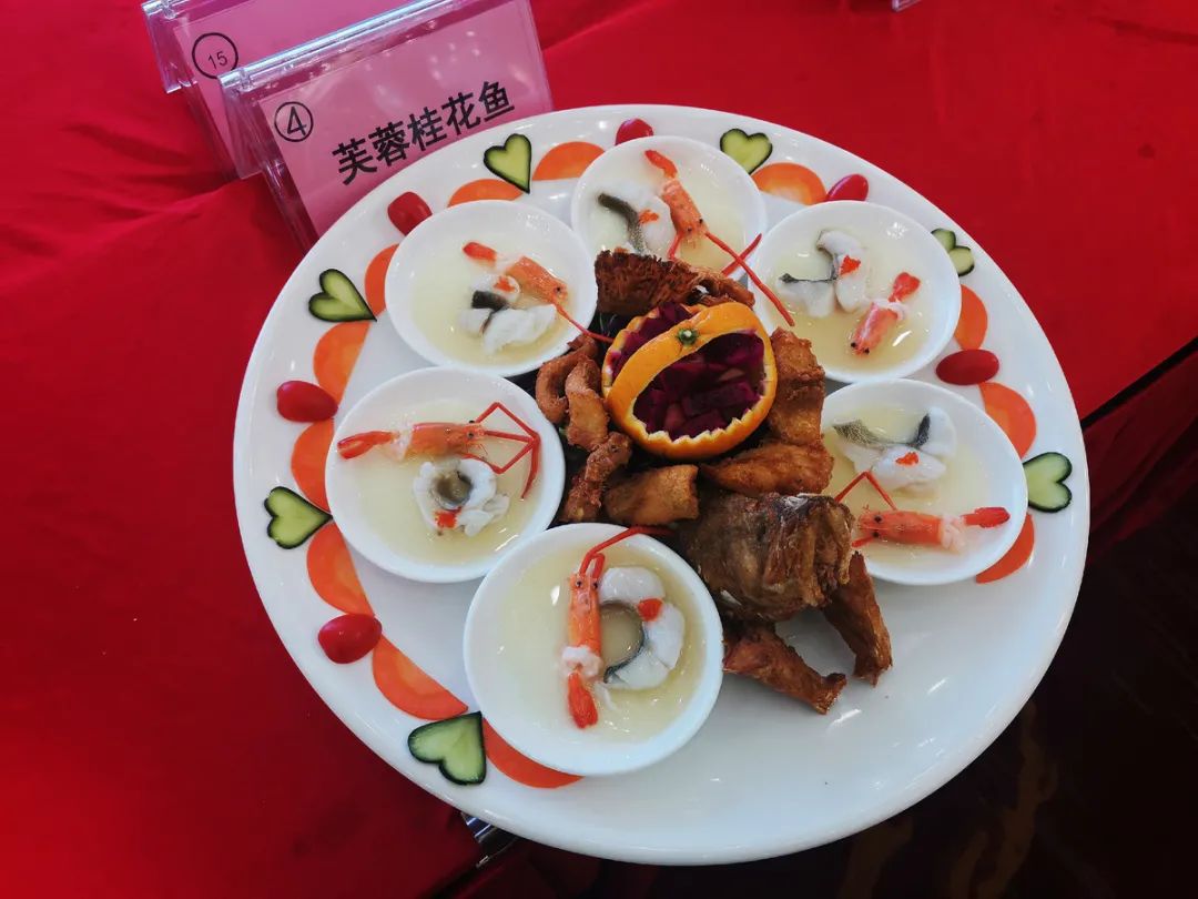 4、优秀奖10名:芙蓉桂花鱼、蒜子焖西江钳鱼、家鄉煎虾饼、金龙贺三江、金银西江鳝、孔雀开屏、蟹后你、翡翠黑松露炒海钳球、河鲜麦溪鱼锅、养生龙利汤