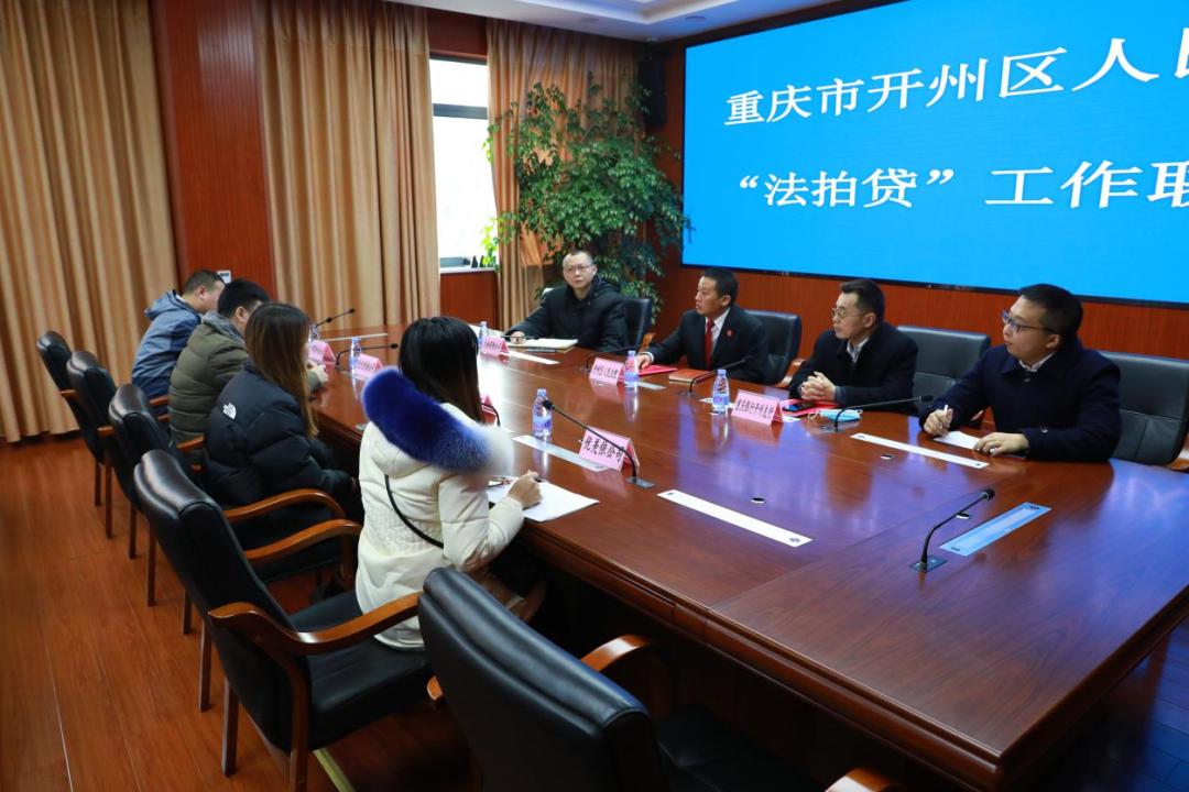 双方在贷款产品、授信对象、衔接事项、风险防控等方面进行讨论,达成尽快在开州区法院推出“法拍贷”业务的初步意向。