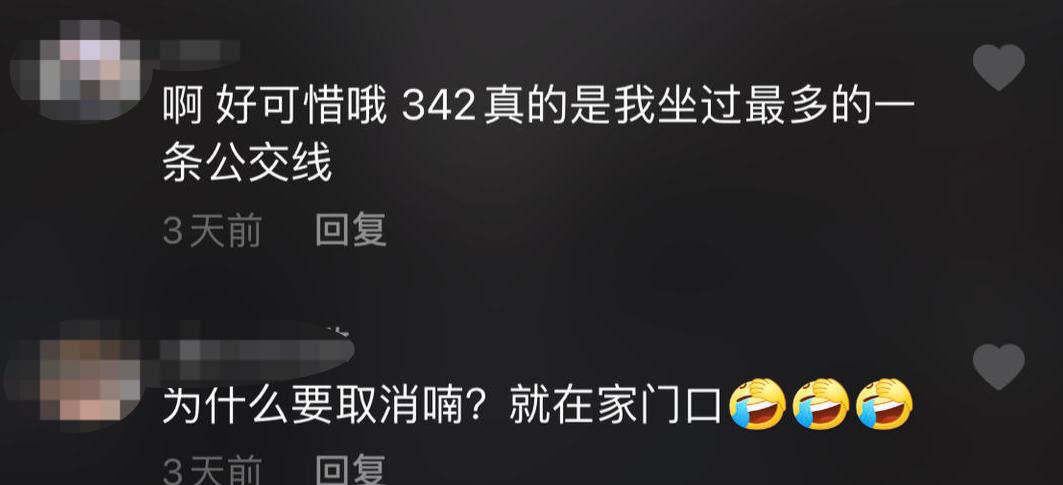 “我老公在那儿等了足足1小时没有车,后来才听说342路停运了。”“起点站就在家门口,为什么要取消?太不方便了。”几天来,342路公交停运、30路改线的消息在中海国际社区里传开,居民们表示既可惜又不方便。