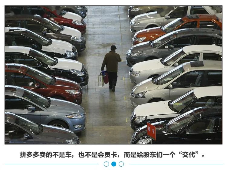 拼多多和Costco的共同点在于,它们卖车都醉翁之意不在酒:Costco卖的不是车,是会员卡。拼多多卖的不是车,也不是会员卡,而是给股东们一个“交代”。