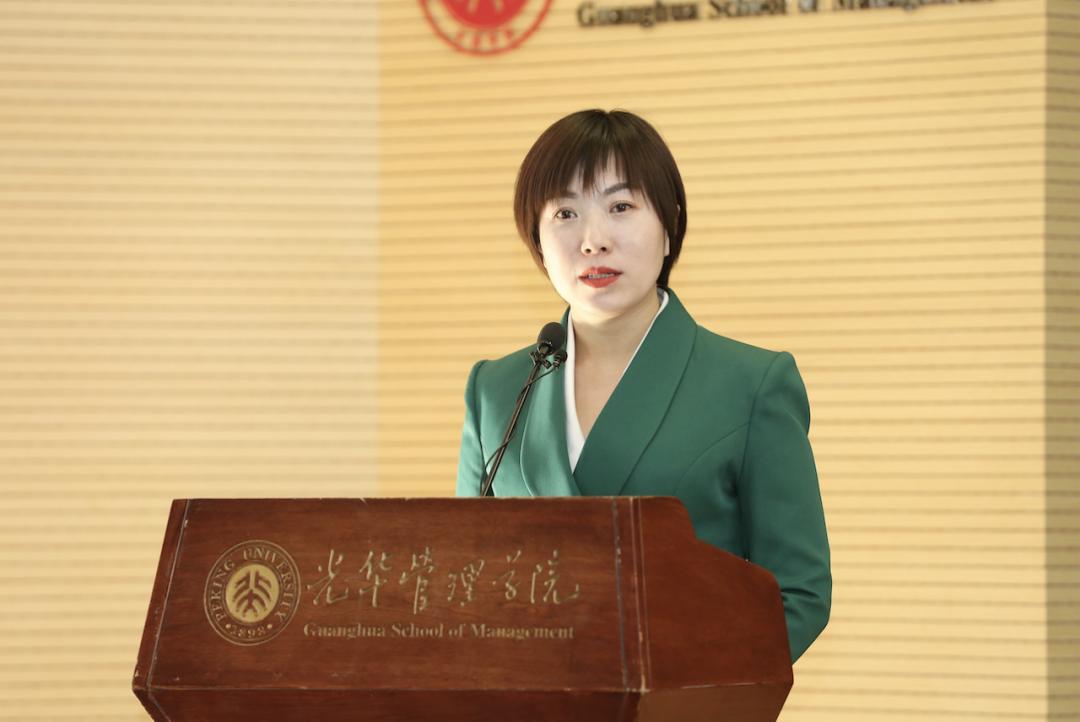报告会伊始,光华管理学院党委副书记滕飞致欢迎词。滕飞对到场嘉宾表示热烈欢迎和衷心感谢,并结合赴塞罕坝实践交流的亲身经历,依托自己在塞罕坝见到的三种树木借物喻人,对塞罕坝务林人用心血、汗水和生命铸就绿色事业致以崇高敬意,勉励同学们深入学习领会习近平总书记关于加强生态文明建设的重要思想,认真体悟塞罕坝精神,让青春在祖国最需要的地方绽放绚丽之花。