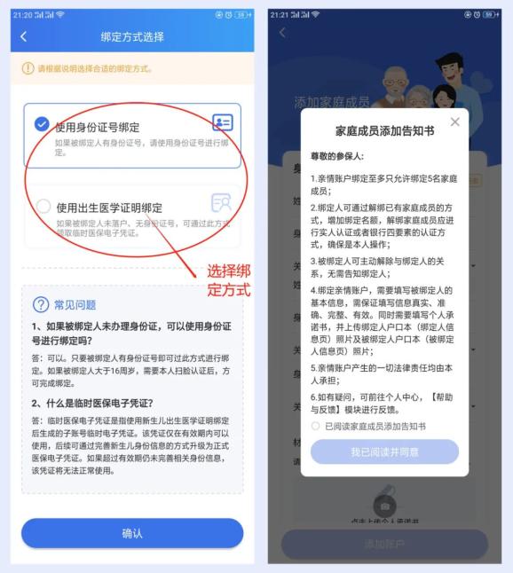 如果您添加的家庭成员小于16周岁,直接点击【添加账户】按钮即可完成账户关联。