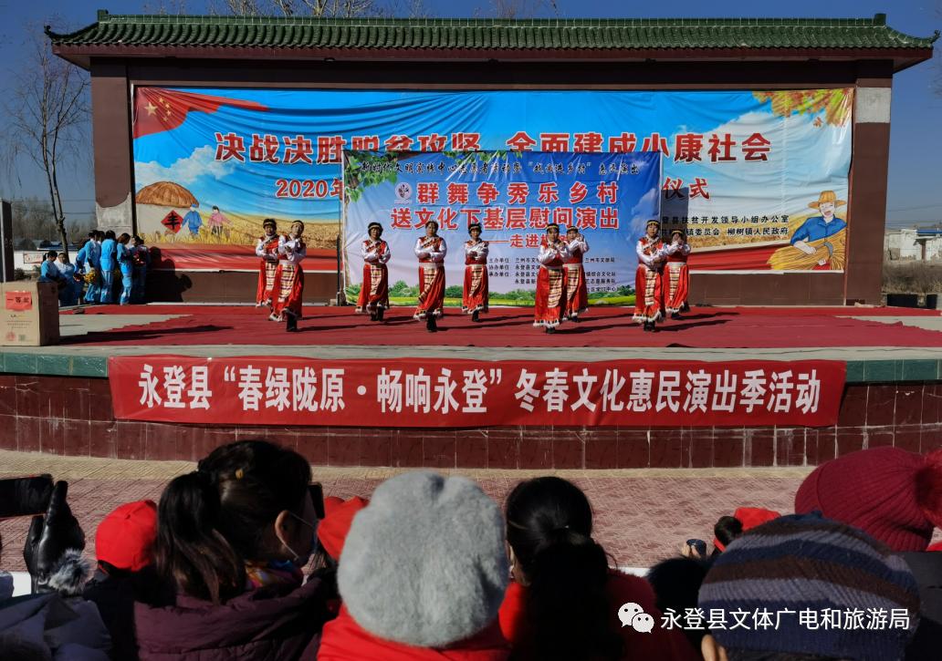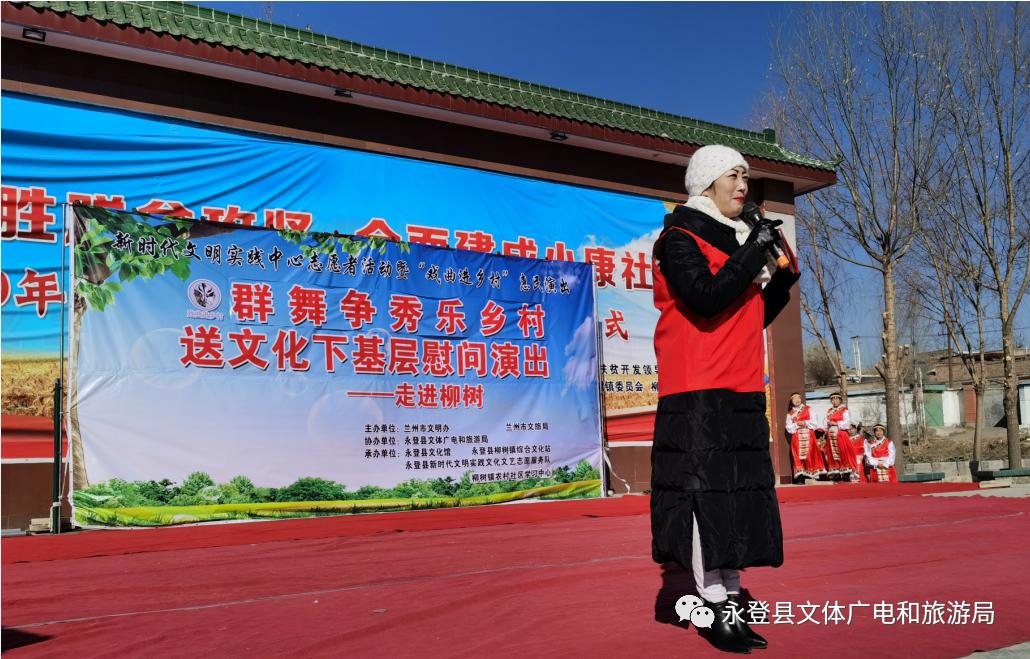 为进一步宣传实践习近平新时代中国特色社会主义思想、贯彻党的十九大精神、落实意识形态工作责任制,加强和改进基层思想政治工作、夯实农村宣传思想教育阵地,打通宣传群众、教育群众、关心群众、服务群众“最后一公里”,响应本年度永登县“春绿陇原·畅响永登”冬春文化惠民演出季活动,12月21日,由兰州市文明办、兰州市文化和旅游局主办,永登县文体广电和旅游局协办,永登县文化馆、柳树镇综合文化站,永登县新时代文明实践文化文艺志愿服务队、柳树镇农村社区学习中心协办的新时代文明实践志愿者活动暨“戏曲进乡村”系列活动“群舞争秀乐乡村”广场舞大赛在柳树镇柳树村精彩上演,为当地群众送上了一场高品质的文艺盛宴。