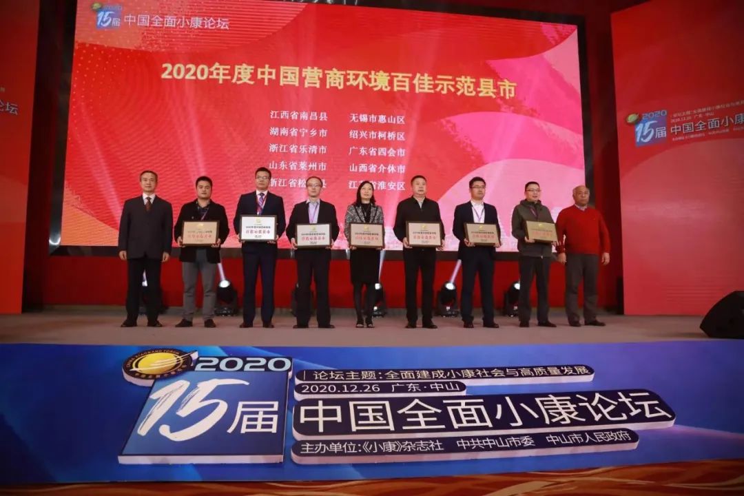 论坛上,广东肇庆市四会市被授予“2020年度中国营商环境百佳示范县市”奖项。四会市委常委、宣传部部长严涛作为代表出席并领奖。