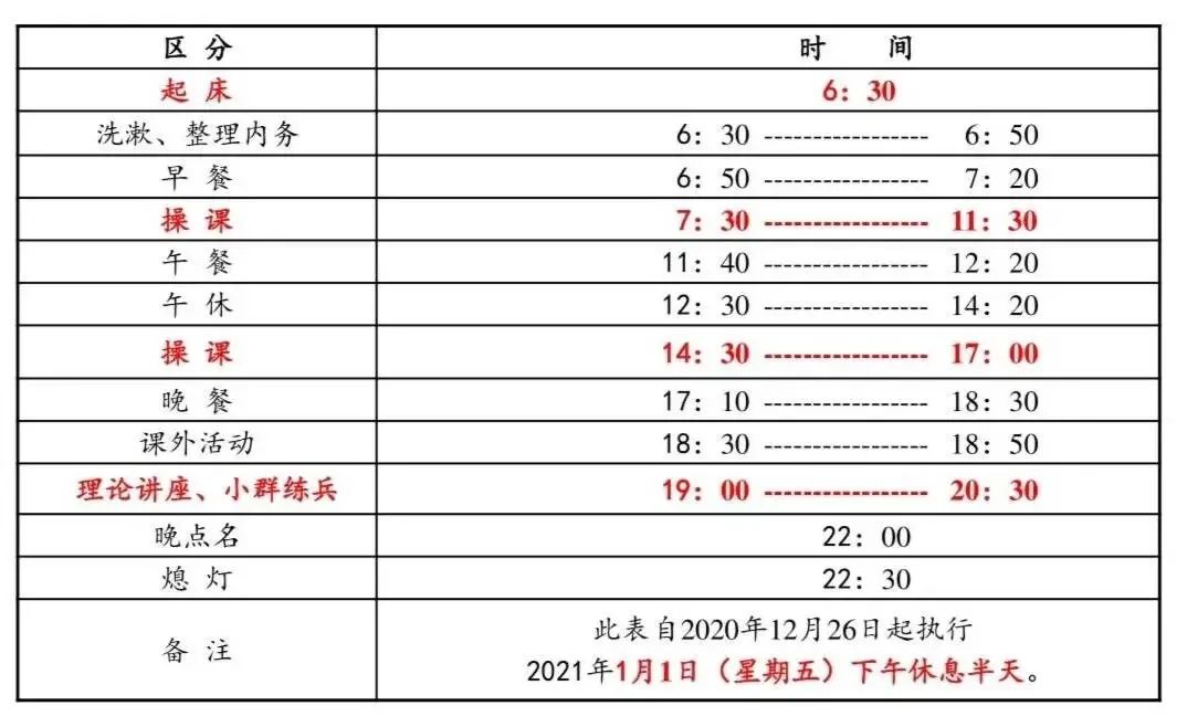 @框:记得带手表,不然没有时间概念会很慌;早上不要迟到;内务会查卫生和洗漱工具的摆放方向。