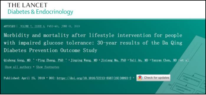我国有个关于糖尿病的著名“大庆研究”,历时了30年,最终的研究成果刊发在了《柳叶刀·糖尿病及内分泌学》上,其非常有利的证实了:生活方式对于糖尿病防控太重要了!