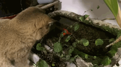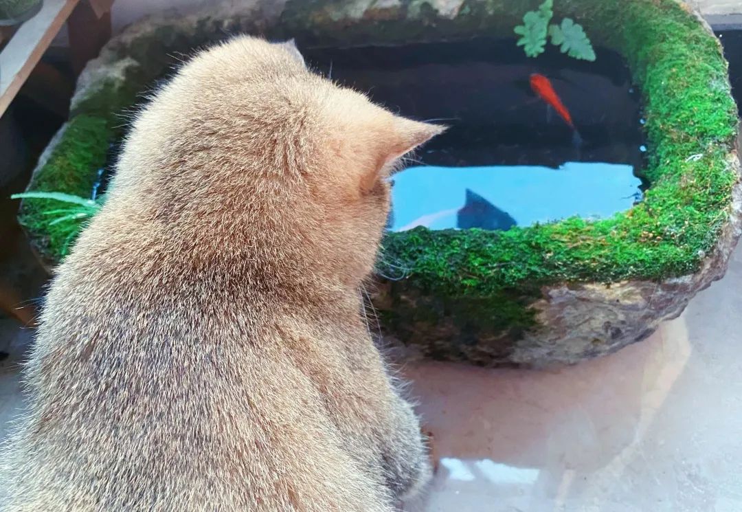 从此沉迷养鱼的龙哥每天都要去阳台走一走,看看小石臼里自己的小红鱼咋样,还会温柔地用手去捞一捞鱼鱼,顺便喝两口人家的洗澡水,这就算是硬汉的深情了。