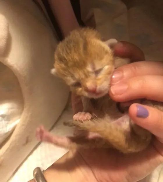 唻唻的脑袋很大、眼睛凹陷、面容有些扭曲,始终像幼猫一样瘦小,硕大的头颅天灵盖是软塌的,前肢的大拇指比同胎兄妹大很多。