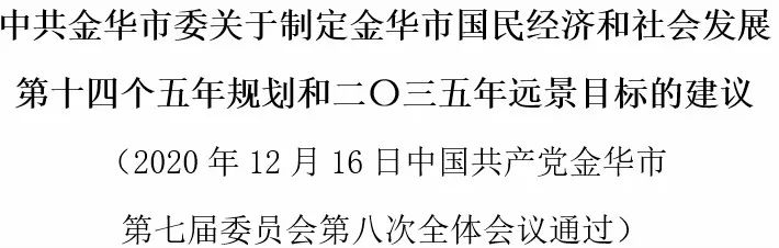 原标题:《中共金华市委关于制定金华市国民经济和社会发展第十四个五年规划和二〇三五年远景目标的建议》