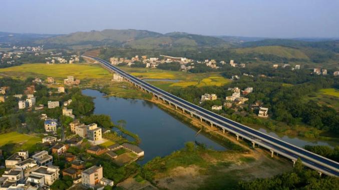 全线首个完成双幅贯通的千米级大桥——中公岭特大桥