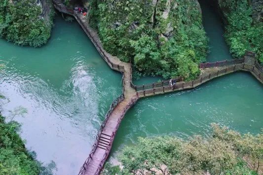 洒金谷景区有着贵州的“卢森堡”的美称。走进景区,四周水声潺潺,鸟声阵阵。沿着绝壁而建的栈道漫步,三江美景尽收眼底。除了令人沉醉的自然风光,这里还有时下热门好玩的娱乐体验项目:步步惊心、玻璃栈道、悬崖秋千……每一种游玩设施都给人惊险刺激之感。