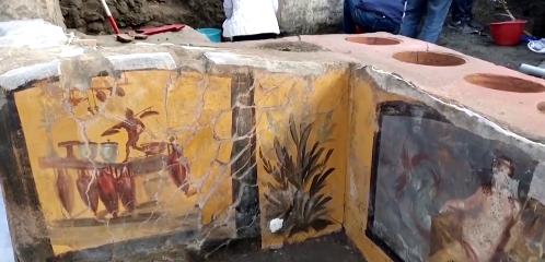 7)考古学家首次在意大利庞贝古城遗址出土了一个完整的古罗马时代快餐店,甚至在陶罐中发现了近2000年前食物的痕迹。