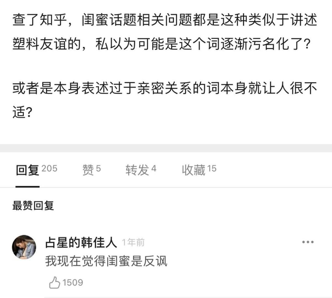当然还有流行文化的扛鼎之作《小时代》系列中对于闺蜜情谊的描绘,也是对于“闺蜜”一词的污名化起到了重要的推动作用,“发烂,发臭!”