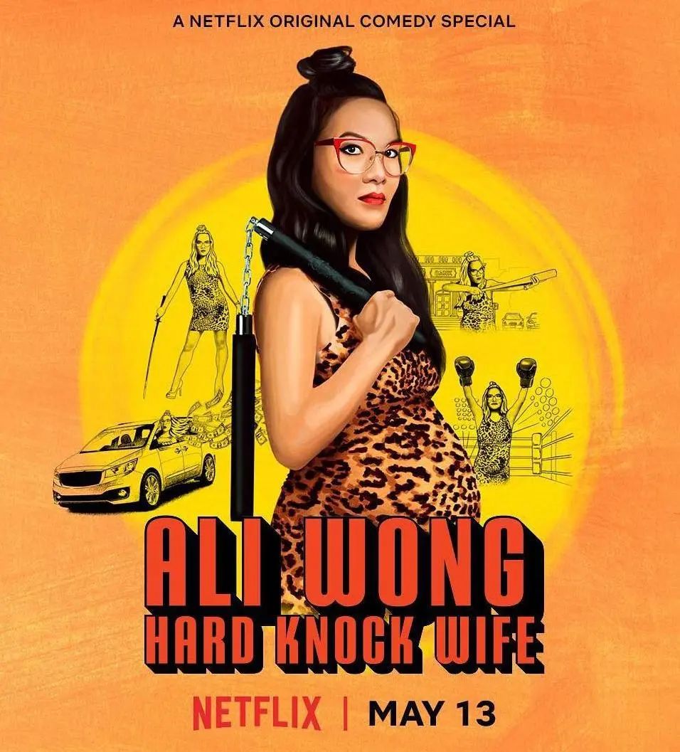一个挺着大肚子的小个子亚裔孕妇,架着鲜艳的眼镜框,裹着紧身豹纹短裙,蹬着舒适亮眼的平底鞋,在台上手舞足蹈,引台下爆笑连连。