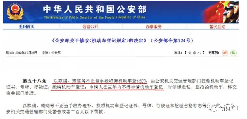 <机动车登记规定>的决定》第五十八条,以欺骗、贿赂等不正当手段取得机动车登记的,由公安机关交通管理部门收缴机动车登记证书、号牌、行驶证,撤销机动车登记;申请人在三年内不得申请机动车登记。机动车登记规定>