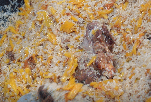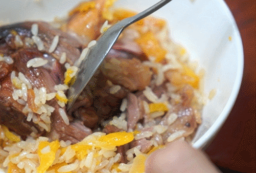 软烂的羊肉一点也不腻人!还想吃?还能单独加羊肉哦~颗颗饱满的饭粒绝对不油腻,汤汁完美在吸收在大米中,黄萝卜带一点点甜甜的清香,绝对是抓饭的最佳搭档。