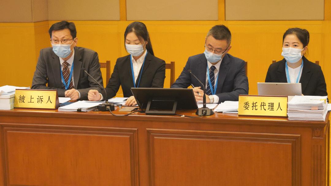 图为“现在开庭”全媒体直播庭审现场。夏佳超 摄
