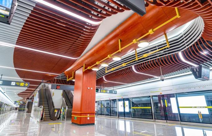 川大望江校区站是8号线的5座重点艺术站之一,不仅展现出百年川大的历史底蕴,走出站外,附近更是坐落着西部最大的城市音乐厅——成都城市音乐厅。
