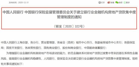 2020年的最后一天,央行、银保监会发布《关于建立银行业金融机构房地产贷款集中度管理制度的通知》,房地产贷款市场迎来重磅新规!