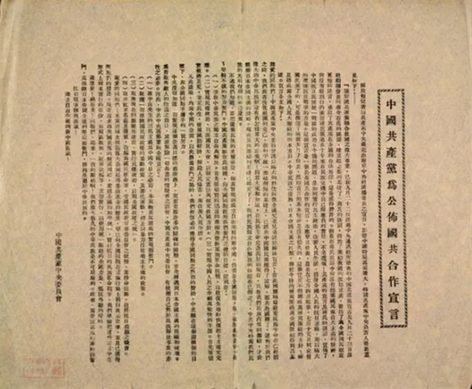 中国共产党是民族革命战争和抗日民族统一战线的积极倡导者和组织者。为了早日实现国共两党合作抗日,进一步推动全国抗战,1937 年7月中旬,中共中央派周恩来、秦邦宪、林伯渠再上庐山,同国民党谈判发表国共合作宣言、红军改编、苏区改制等问题,并将《中共中央为公布国共合作宣言》送交蒋介石。宣言提出迅速发动全民族抗战、实行民权政治、改善人民生活等基本主张,希望国民党能予实行。同时,声明中国共产党愿为实现孙中山先生的三民主义而奋斗,停止推翻国民党政权和没收地主阶级土地的政策,取消苏维埃政府,取消红军名义及番号,改编为国民革命军。中共中央希望以宣言作为国共两党合作的政治基础。